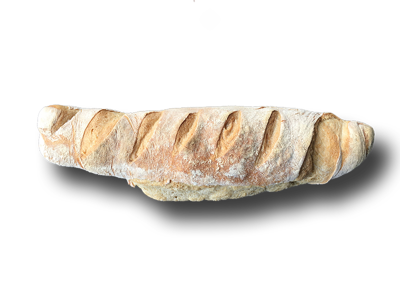 A traditional long narrow French bread with crusty exterior and soft white interior. Literally = a small rod /stick. Great for sandwiches or sliced as an accompaniment for any meal.